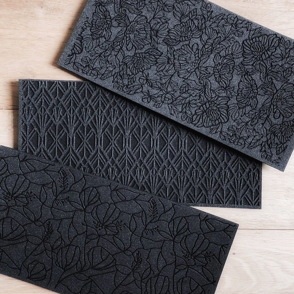 Cakes by Angela Morrison has designed these embossers out of a lightweight foam to leave an excellent raised pattern on your fondant and a high quality textural contrast.