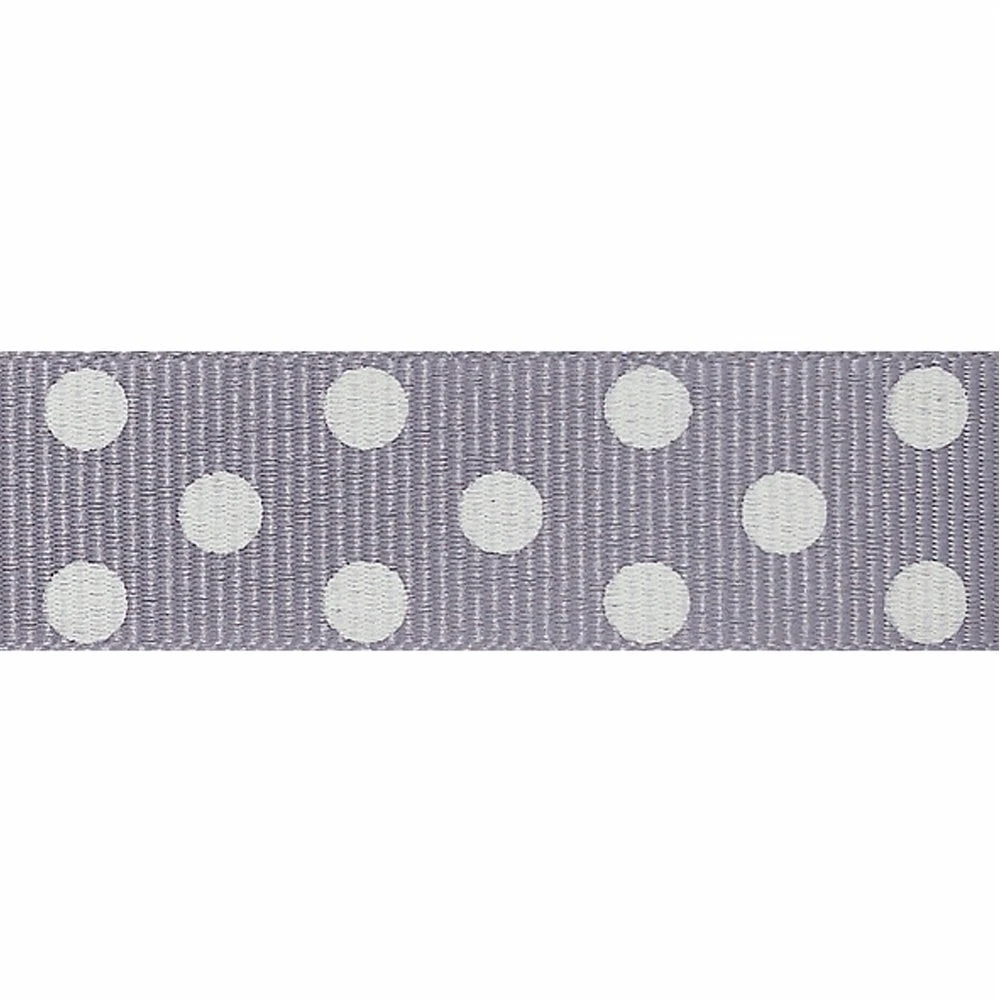 Berisford Ribbon Spotty Grosgrain Grey/Ivory Colour No.10 Ribbon – 15mm X 20M