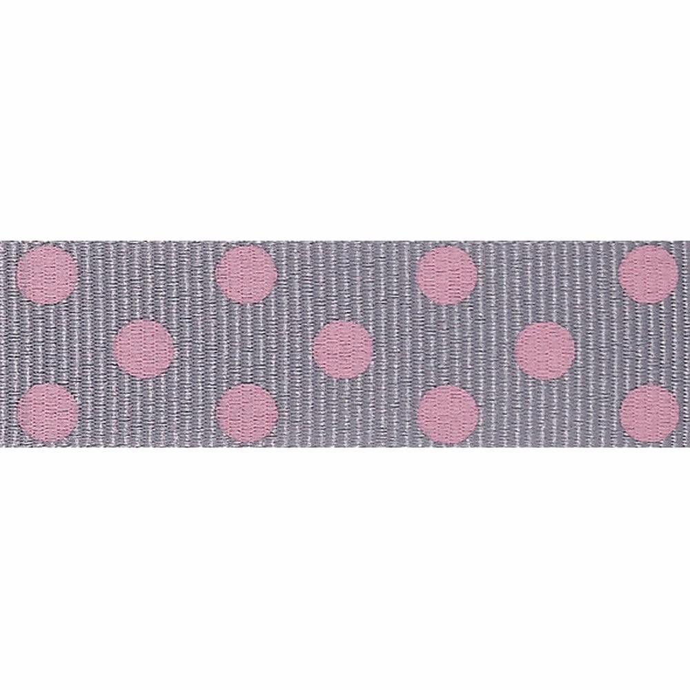 Berisford Ribbon Spotty Grosgrain Grey/Pink Colour No.13 Ribbon – 15mm X 20M