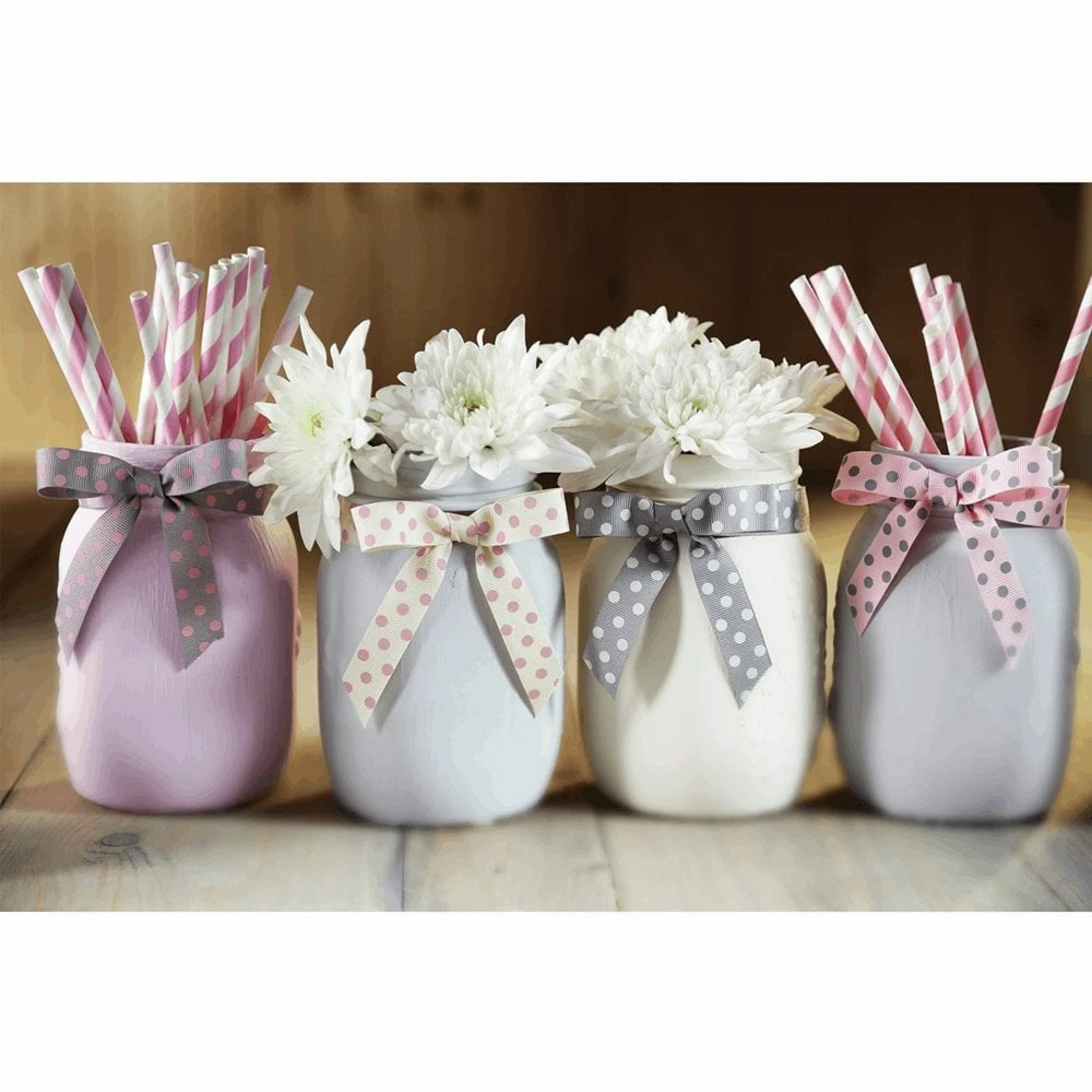 A printed dot on ribbed polyester provides a retro alternative to the traditional polka satin. Designed to compliment the natural charms designs and colours. Available in 15 and 25mm, in various shades. Dry clean or wash at 50 degrees. Tumble dry. Cool iron.