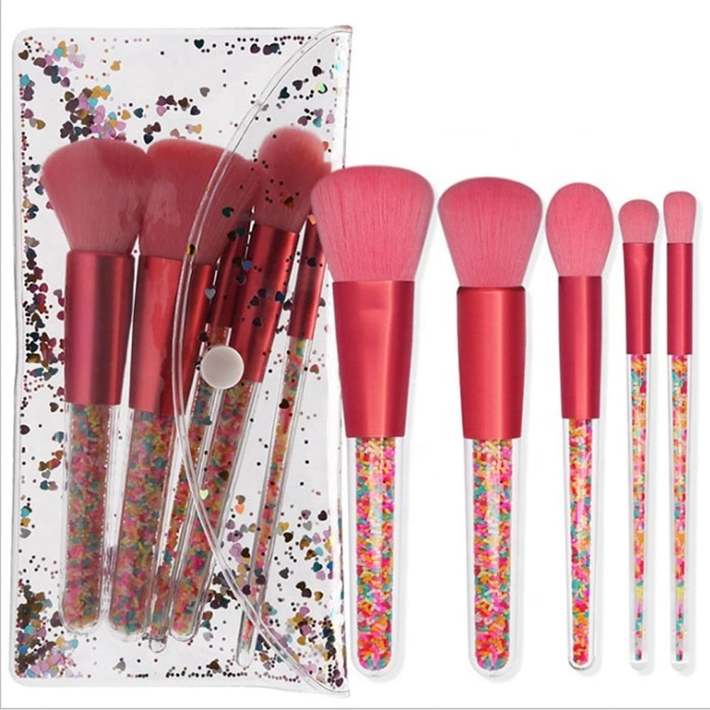 Sprinkle Red Brush Set Private Label 5pcs Cosmetic Blush Powder Brush Kit
