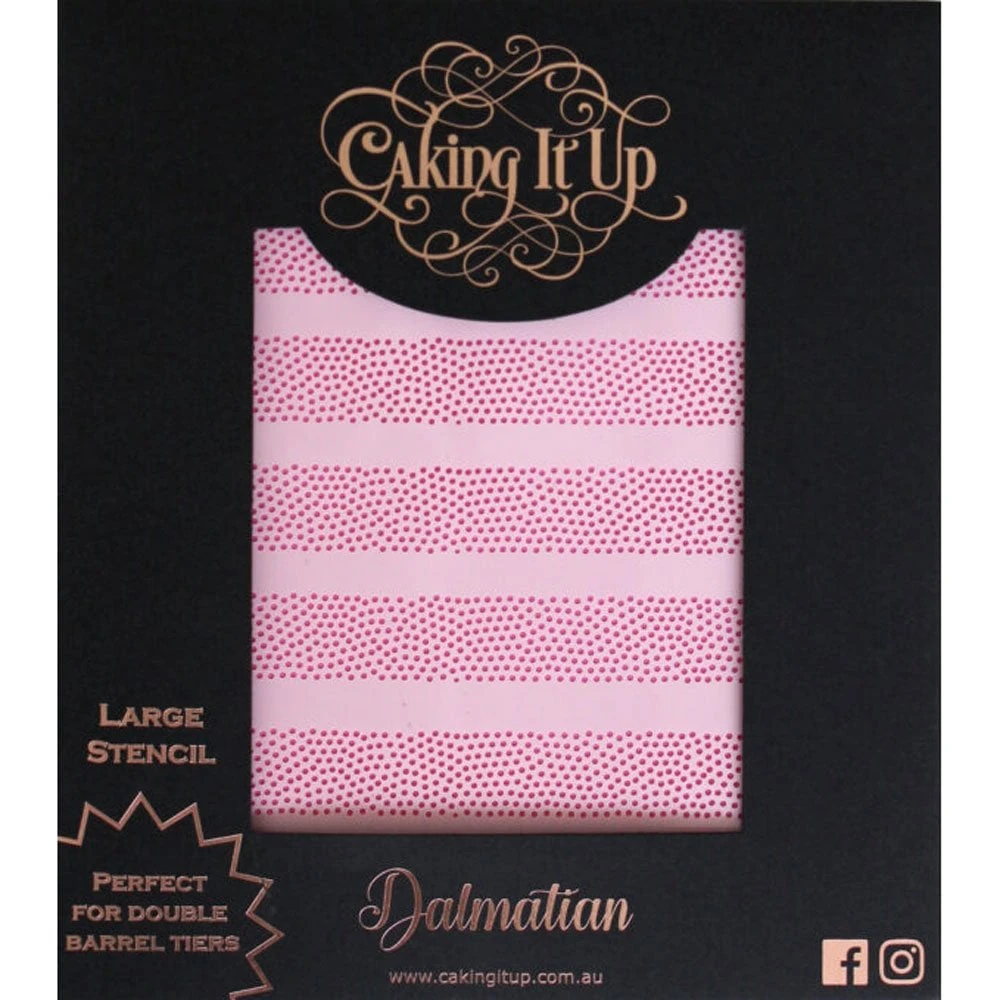 Add some texture and depth to your creation with this cake stencil. Perfect for double barrel cakes and taller tiers, the stencil pattern area is almost 9 inches high, saving you time and creating a seamless effect from top to bottom. This pattern looks amazing when used with a white on white effect, but also stunning when used with contrasting colours.