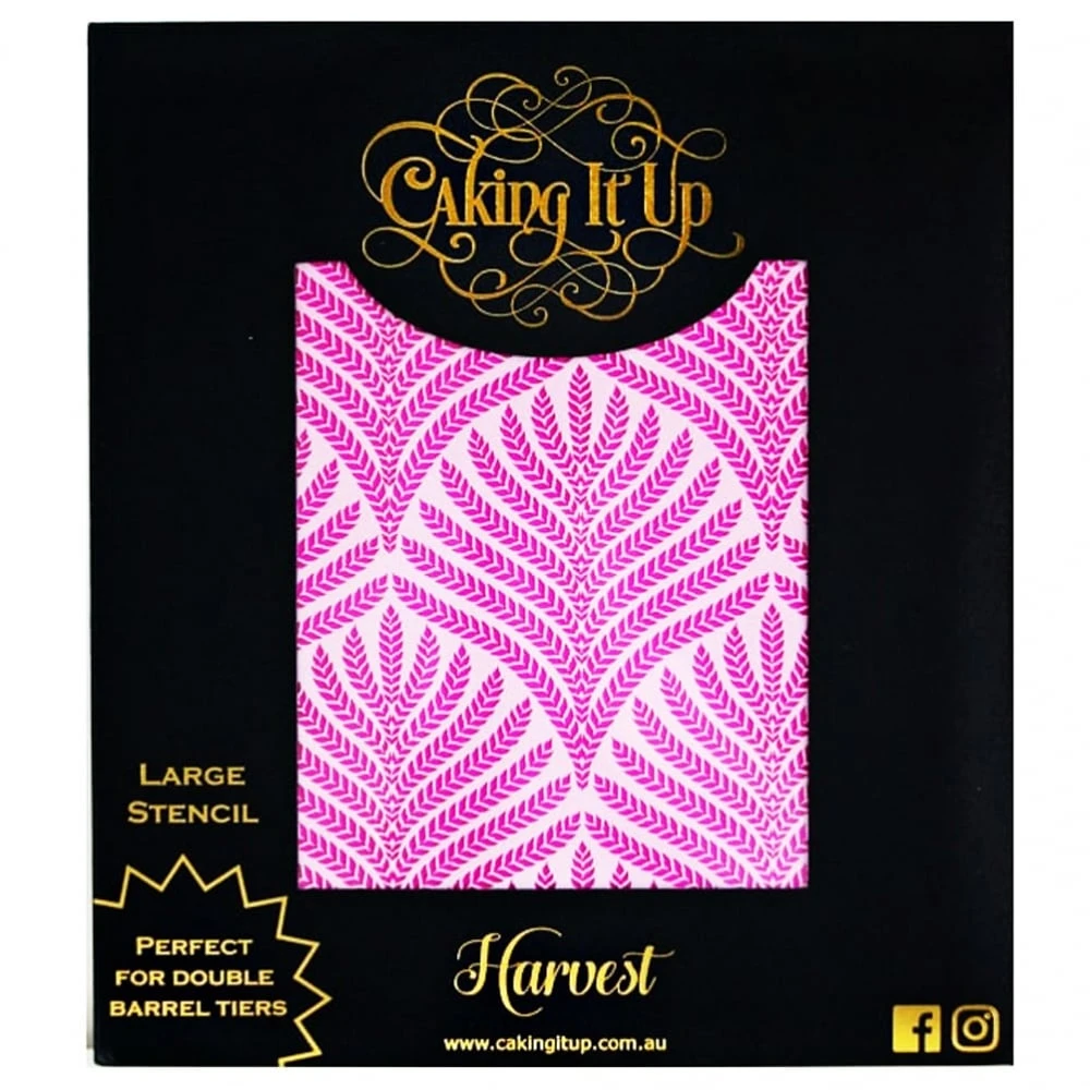 - Our Harvest cake stencil is already one of our most popular designs. The natural flow is inspired by the patterns of wheat bushels ready for harvest.