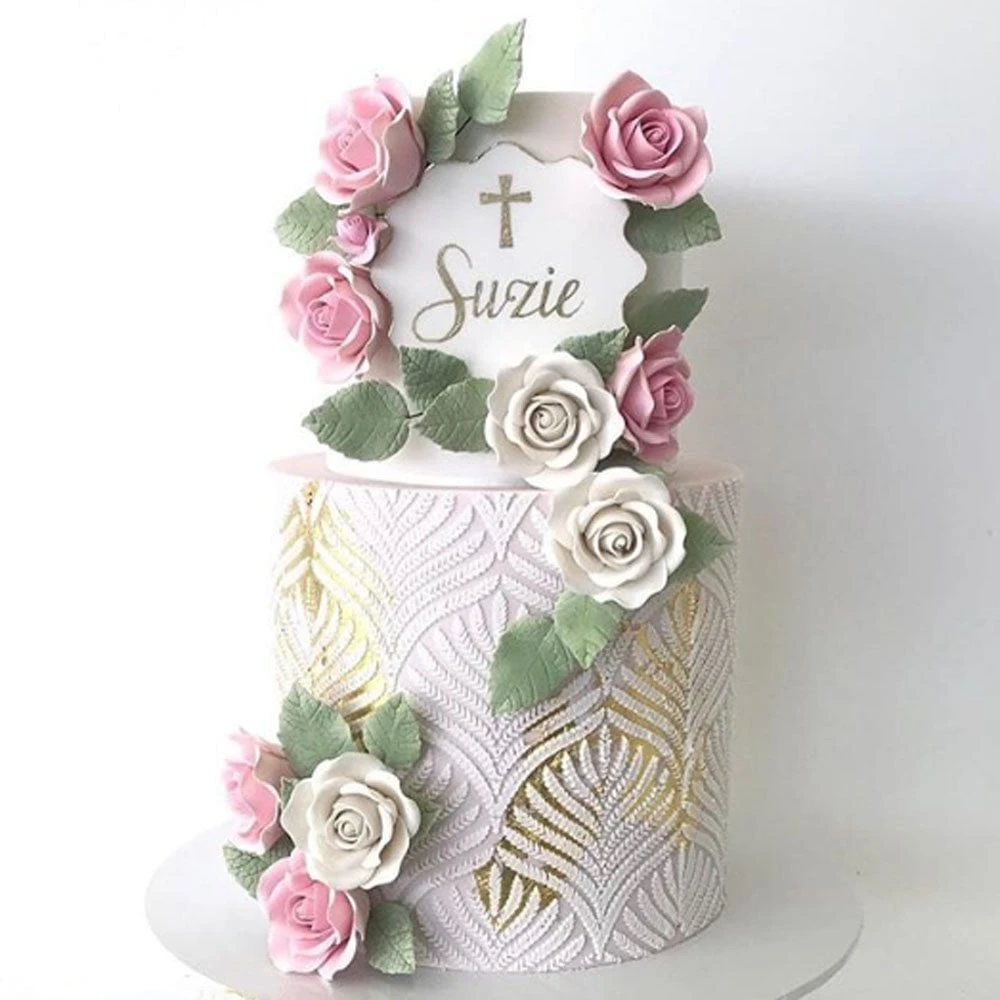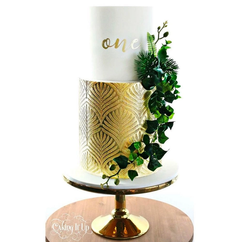 - Add some texture and depth to your creation with this cake stencil. Perfect for double barrel cakes and taller tiers, the stencil pattern area is almost 9 inches high, saving you time and creating a seamless effect from top to bottom. This pattern looks amazing when used with a white on white effect, but also stunning when used with contrasting colours.