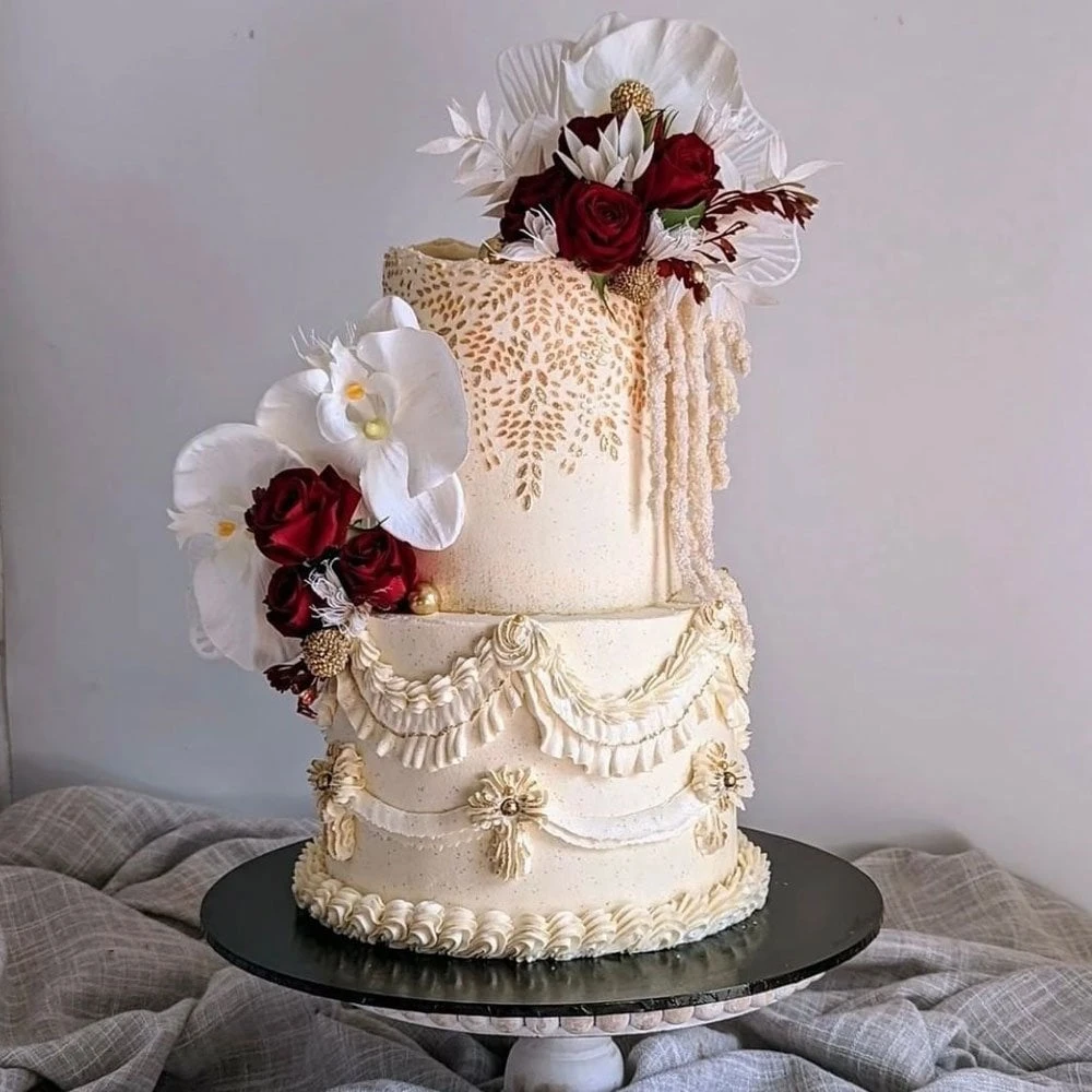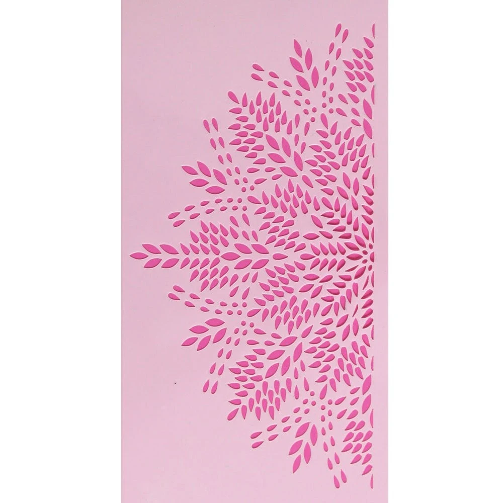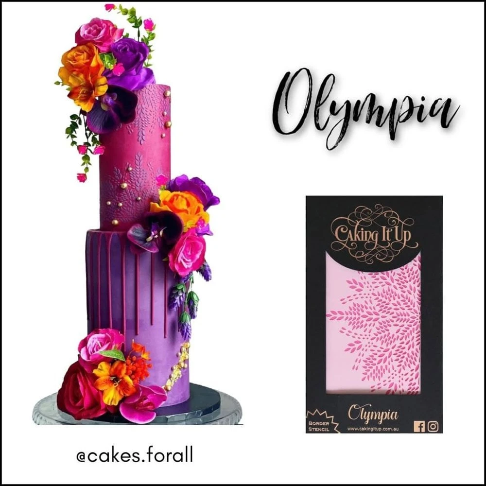Our Olympia border cake stencil creates a beautiful fern element for decorating your cakes. Can be used to create a hanging effect along the top edge of your cake or a climbing effect along the bottom edge of your cake. It will be sure to add a beautiful texture to your cake design.