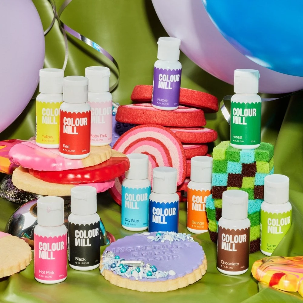 Colour Mill colourings allow the colour to disperse through every part of a fat-rich medium, including the sugar, eggs, and butter. This is because all water-based materials have been removed and replaced with bake & cake friendly oils; these oils mix through much better than water-based gels (which we know water repels from the oils in your baking).