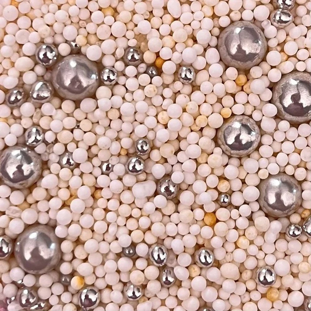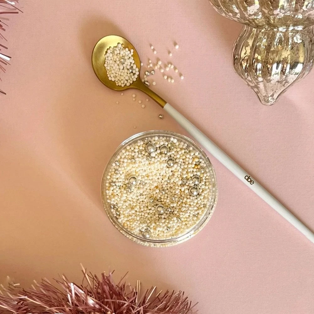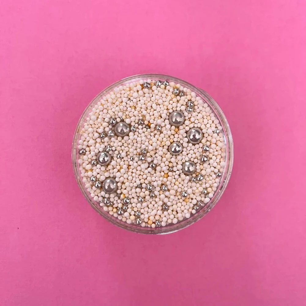 The First Noel is a joyful blend of ivory non pareils studded with high shine silver pearls.