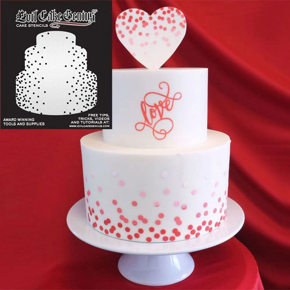 This versatile stencil works for everything from weddings to birthday cakes! Can be masked off to use one half or cut vertically to make 2 identical border stencils! Acrylic Stencil works with Royal Icing, Buttercream, and Airbrush.