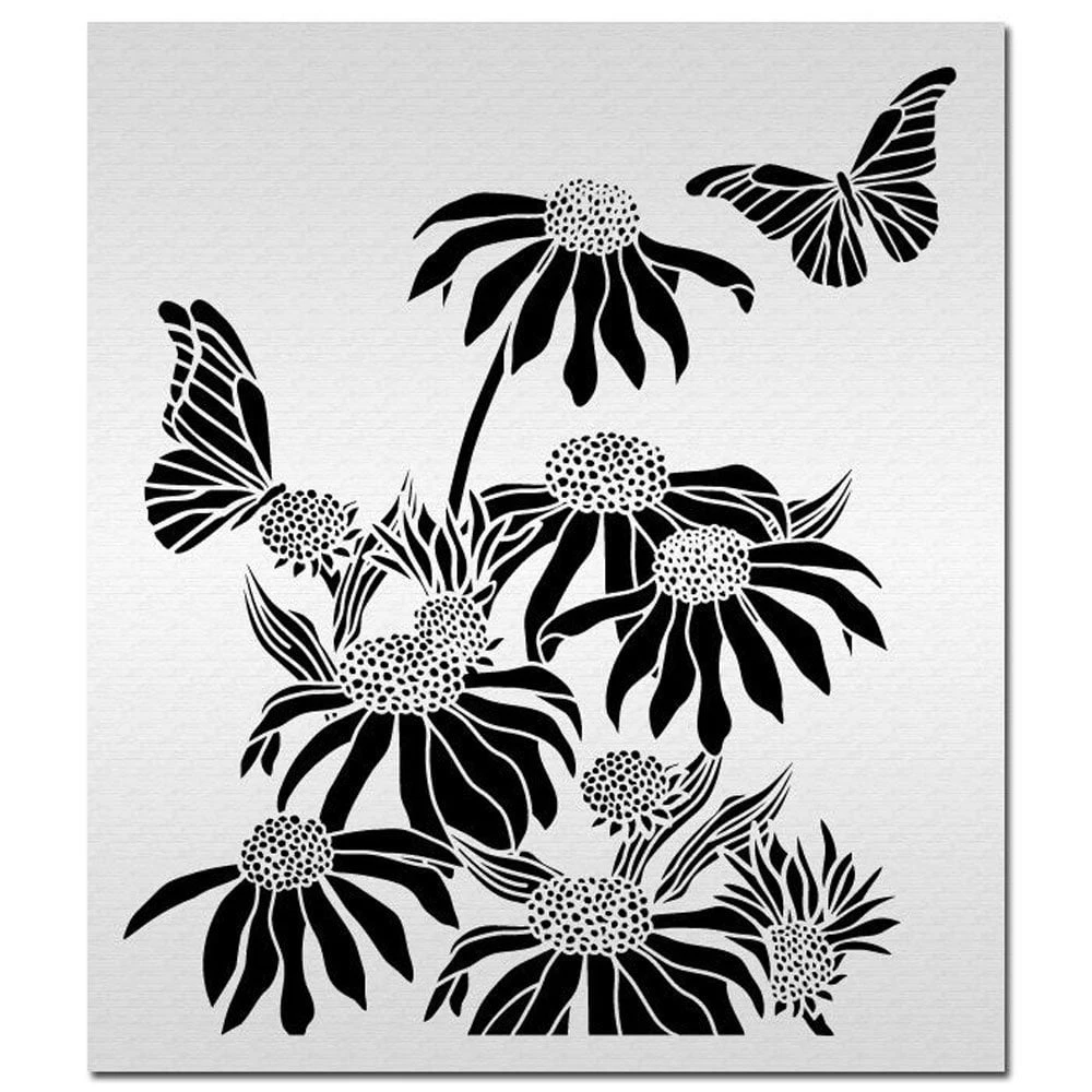 Super sweet meadow flowers and butterflies in one easy step. No bug spray required. Pattern measures 7-1/2″ wide by 8-1/2″ high and matches up side to side. A striking stencil to use on any top forward cake design! Can be masked off with tape for shorter tiers. Acrylic Stencil works with Royal Icing, Buttercream, and Airbrush.