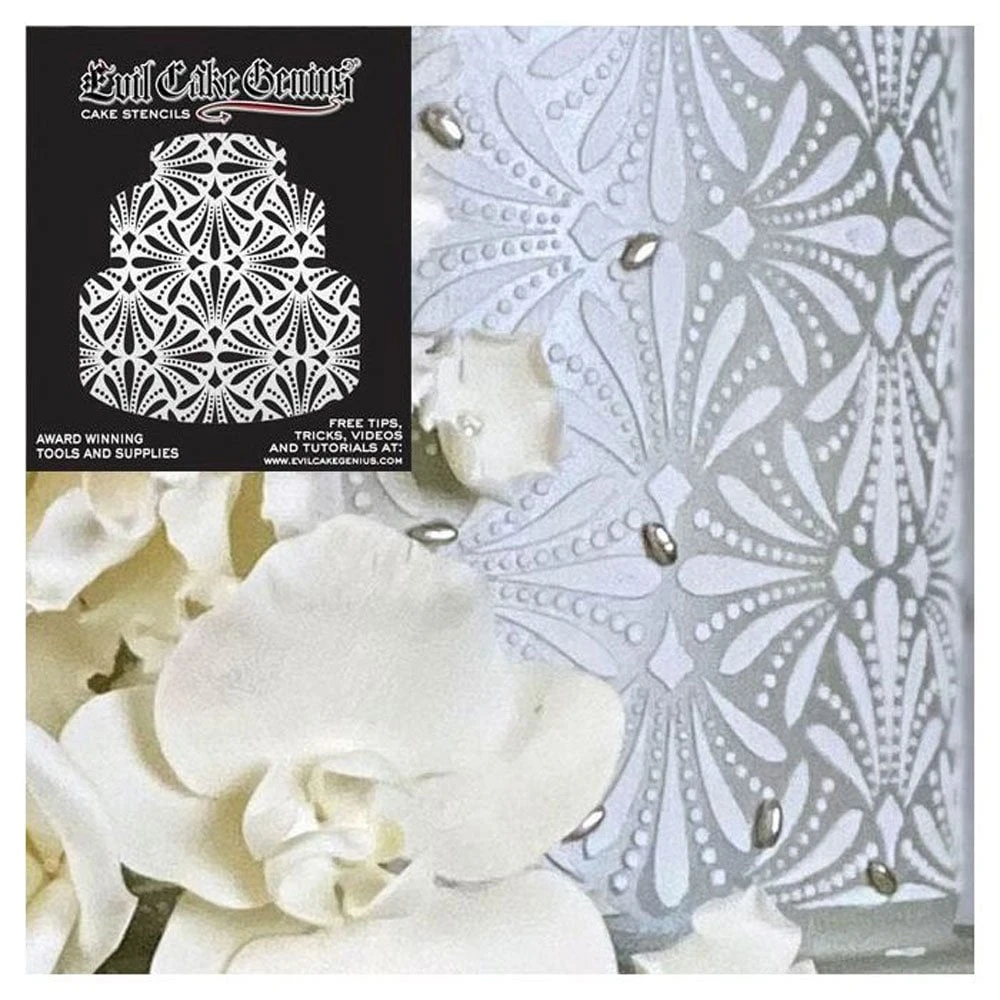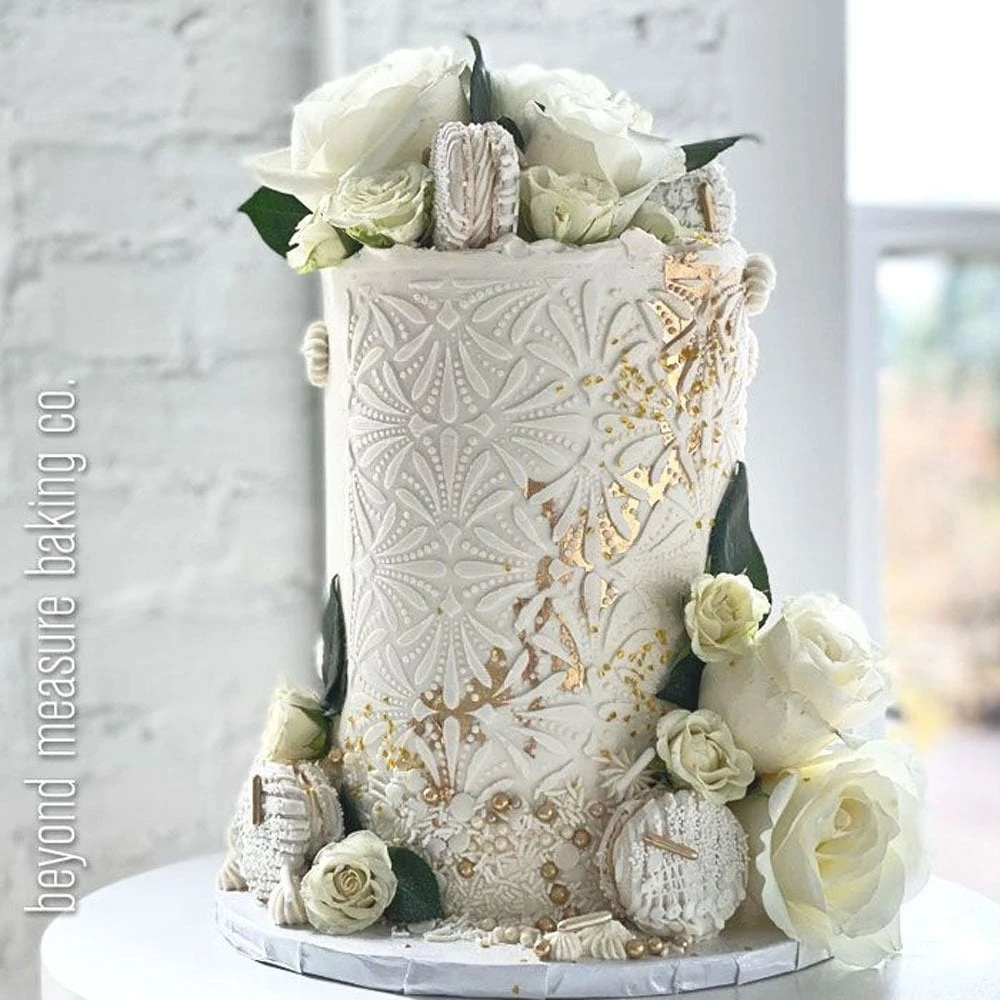 Another beautiful design from Julie Deffense. This stencil is striking in contrasting color, but makes an amazing textured tier when stenciled tone on tone.