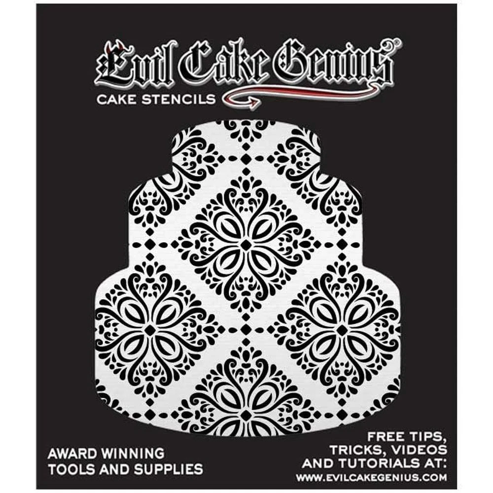 This versatile stencil works for everything from weddings to birthday cakes! Can be masked off with tape for shorter tiers. Acrylic Stencil works with Royal Icing, Buttercream, and Airbrush.