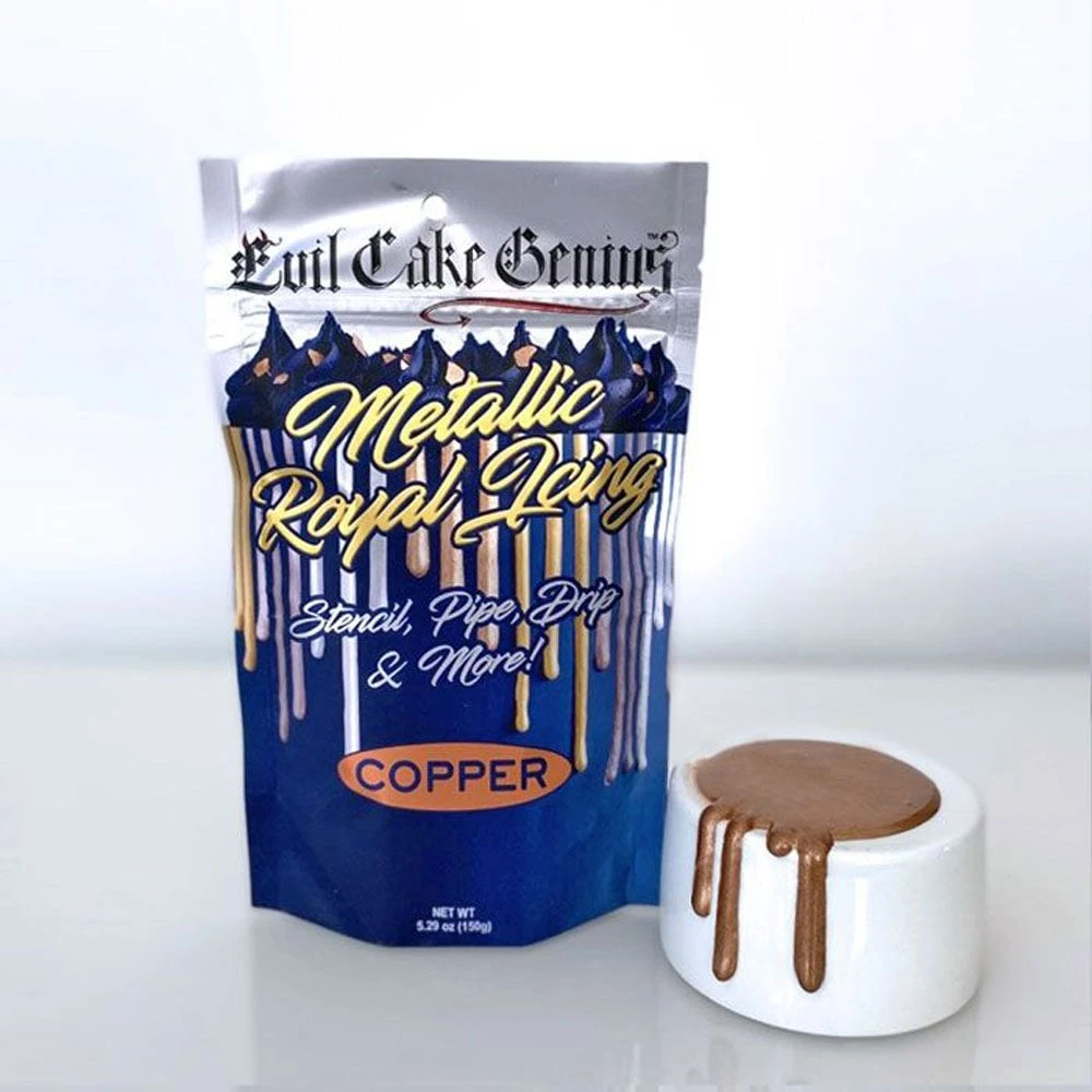 No need to paint or airbrush for beautiful copper details on cakes! Shimmery Copper Icing for Stenciling, Mesh Stenciling, Metallic Drip, and Piping! Just add Water and use! Thin it down with a bit more water, and use it as metallic Cake Drip!! Our Copper Royal Icing dries hard, and is completely edible! Sheer Genius!
