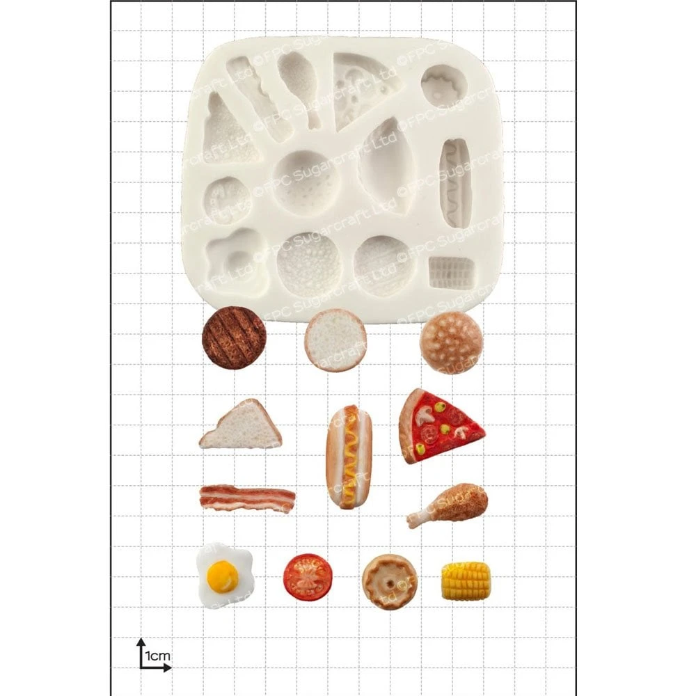 A set of fun miniature food items for celebration cakes, cupcakes and many other craft projects.