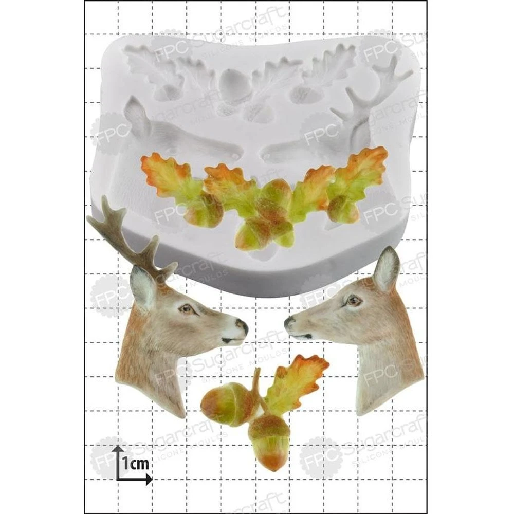 Hand sculpted Stag and Doe heads with oak leaf and acorn embellishments.