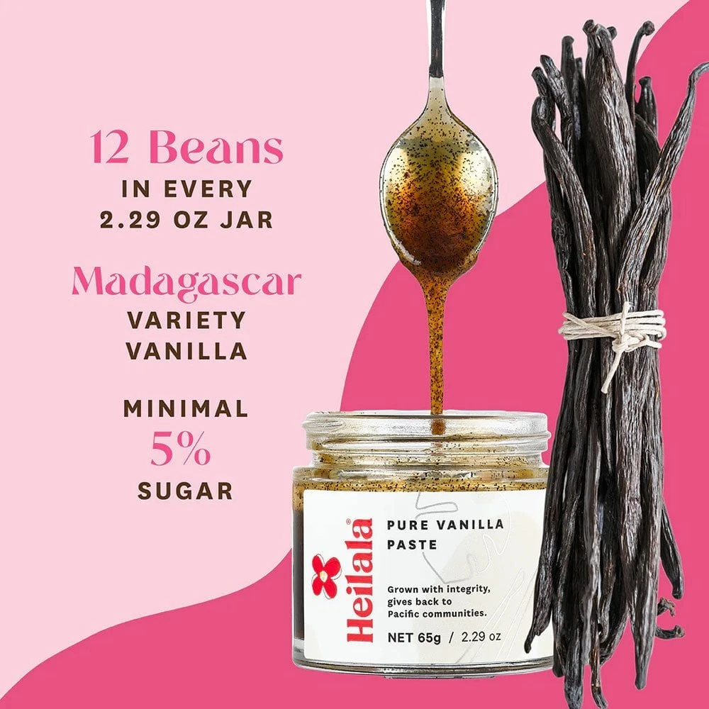 This vanilla bean paste is made by carefully blending three-month cold extracted pure vanilla bean extract with vanilla bean seeds. Heilala vanilla bean paste provides exceptional concentrated vanilla aroma and flavor.
