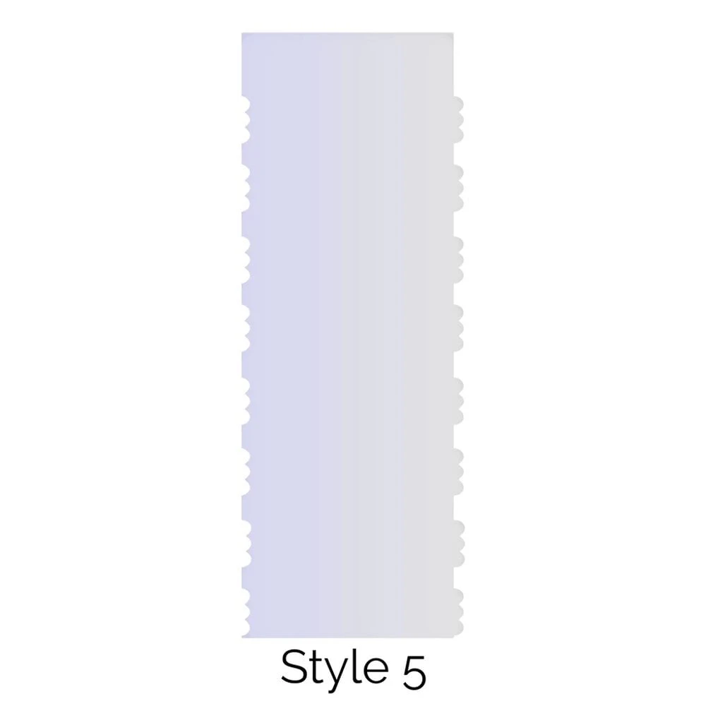 This Cake Scraper is a quick way to give your cake that professional finish. It allows you to easily and efficiently create a great clean finish with just a few swipes. Simply cover your cake with a generous amount of buttercream, ganache, icing, chocolate or frosting, hold the scraper vertical and run the scalloped edge around your cake. This scraper is double-edged so can be used to produce two different style finishes!