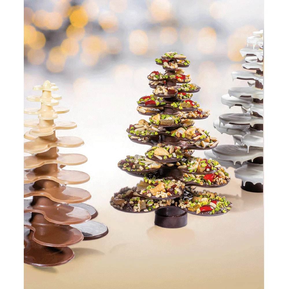 - Cavities in each mold in the form of a 3-lobed platforms progressively smaller, to let you form chocolate pieces that, put together, form a slope like a tree widest at bottom and narrowest at top