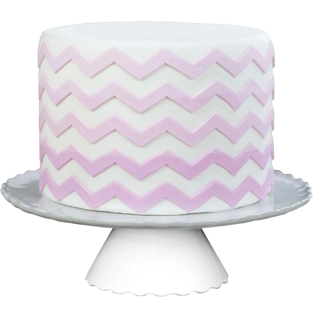 The Small Chevron Silicone Onlay® Ribbon is the perfect tool for creating raised, 3D chevron patterns for cake decorating or any arts & crafts project. If you like working with stencils you will love this Small Chevron Silicone Onlay® Ribbon which is made with a flexible, food grade silicone rather than rigid, laser-cut plastic. Click here to watch the video and learn how these fantastic 3D stencils transfer intricate designs to almost any surface, perfect every time.