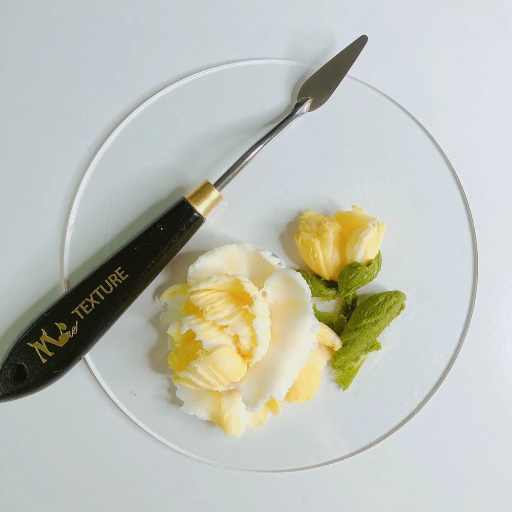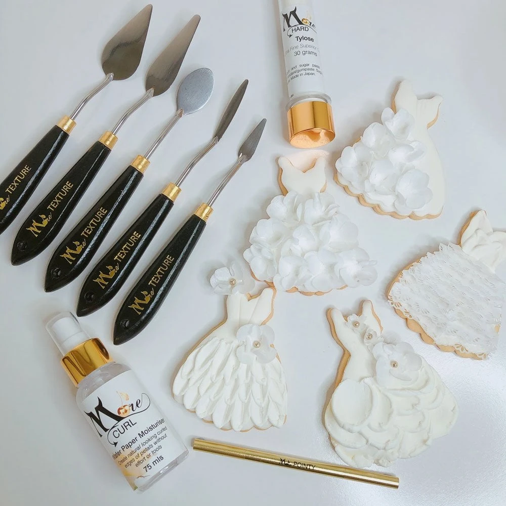 More Texture is a Custom Set of Stainless Steel and Wood handle Palette Knifes specifically designed by Monica Cavallaro for Buttercream, Ganache and Royal Icing work on cakes.