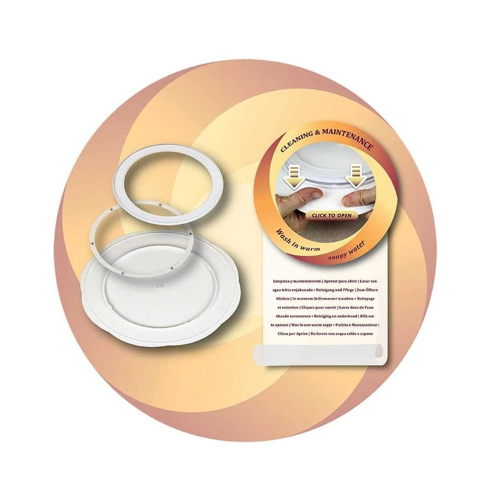 The turntable will hold up to a 10” cake and has been designed specifically so that it turns with absolute ease.