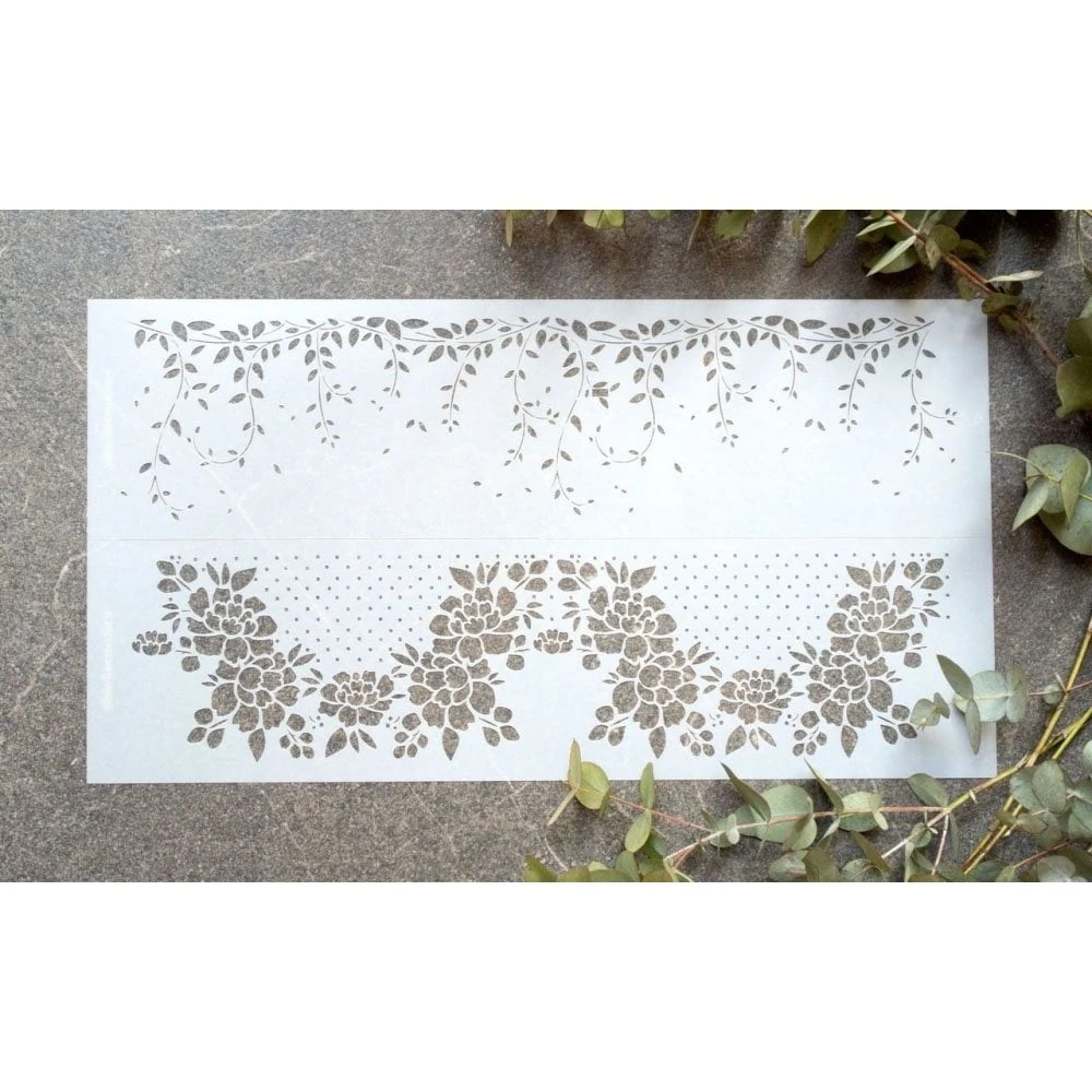 Tip 2: Use the royal icing or buttercream to fill the open spaces and leave it the same thickness as the stencil. This stencil is designed for this.