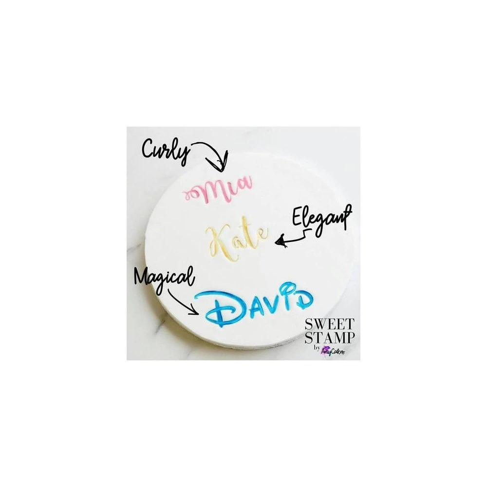 With SWEET STAMP by AmyCakes you can easily emboss your message or name then paint. No more messing around with frustrating and time consuming cutters or struggling to find modern and elegant lettering.