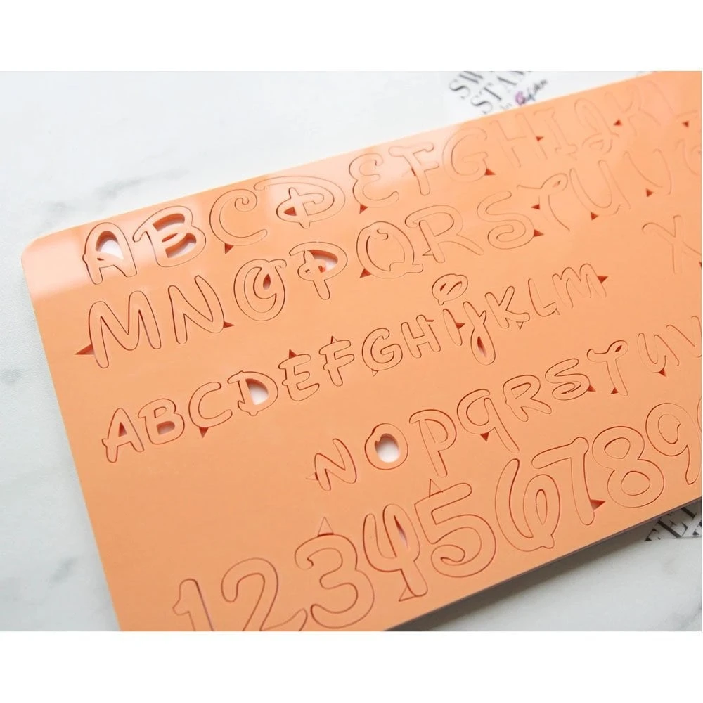 The Magical SweetStamp set is a medium-sized font and contains Uppercase, Lowercase, numbers and symbols. The lowercase in this style font can double as a mini set for cupcakes and cookies. Easy to use and paint, this is a great starter set!