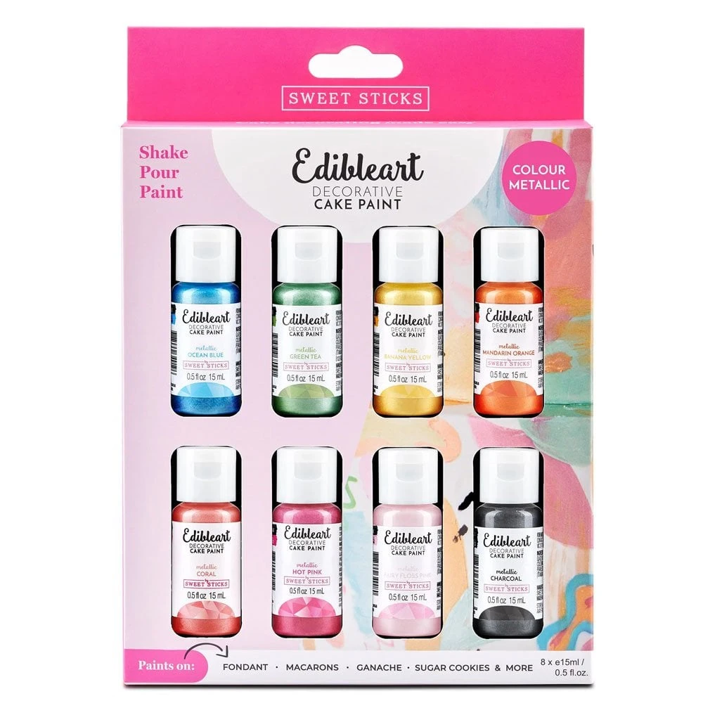 Edible Art Decorative Paint by Sweet Sticks is a range of revolutionary paints made in Australia. With a unique blend of 100% edible ingredients they can paint, dry and be rub free on many surfaces making cake decorating quicker, easier and more effective.