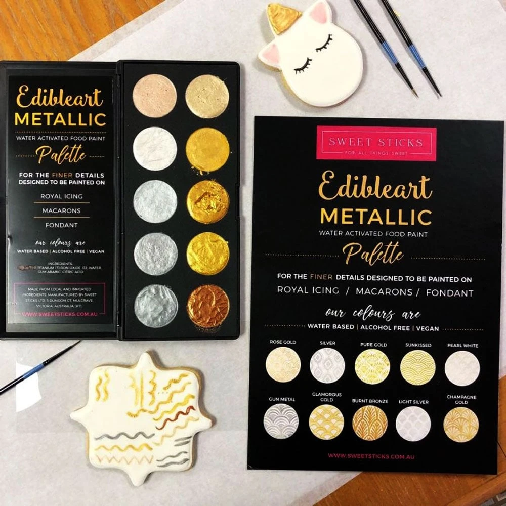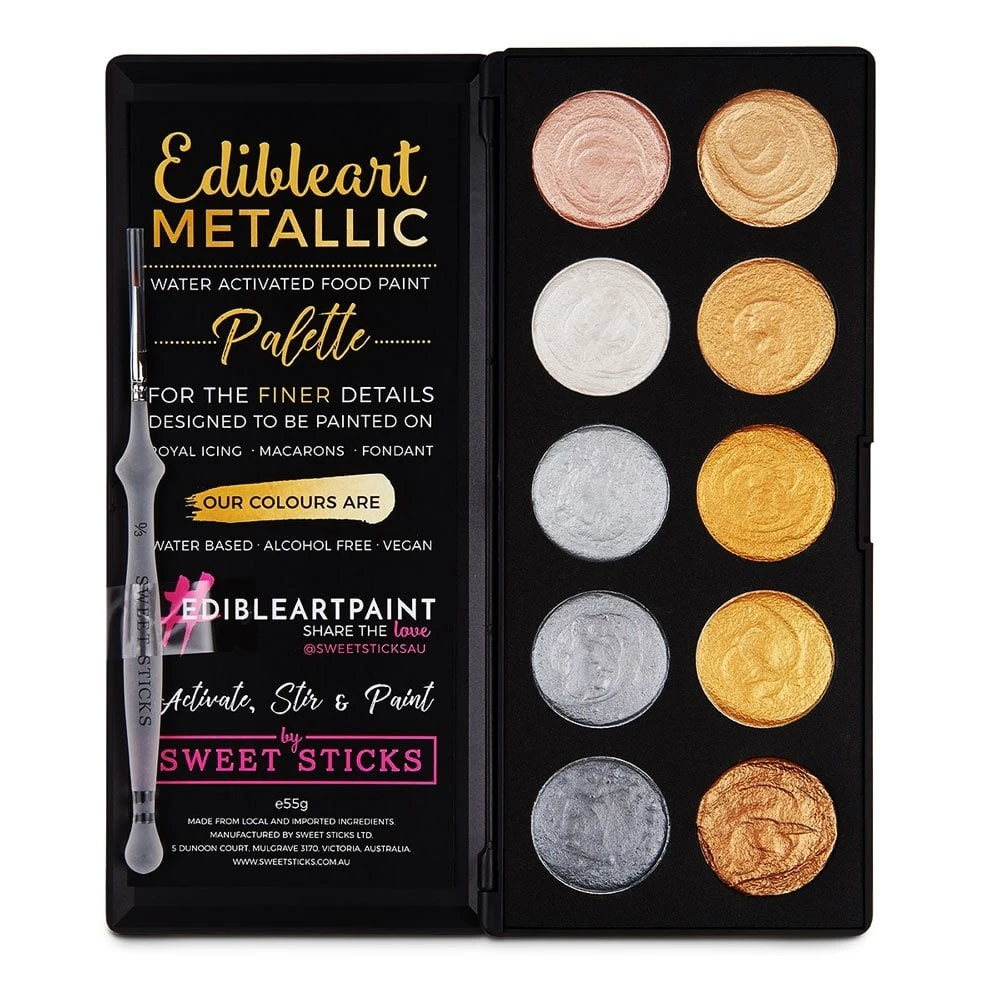 - The Sweet Sticks; Edible Art Metallic Water Activated Food Paint Palette – designed for the finer details.